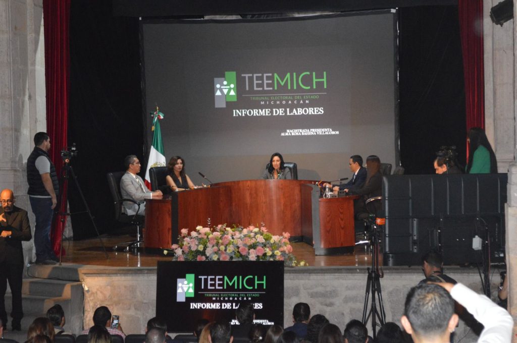 Explicó que uno de ellos fue el proceso extraordinario de Irimbo y, por vez primera, la elección extraordinaria de las personas juzgadoras del Poder Judicial del Estado; con tres integraciones de plenos diferentes, y una reducción significativa del presupuesto pese a ser año de proceso electoral, y pese a ello, “nuestro tribunal permanece estable, fuerte, unido y me parece que cada día, más reconocido por la solidez y eficacia de sus resoluciones”, puntualizó la Magistrada Presidenta.