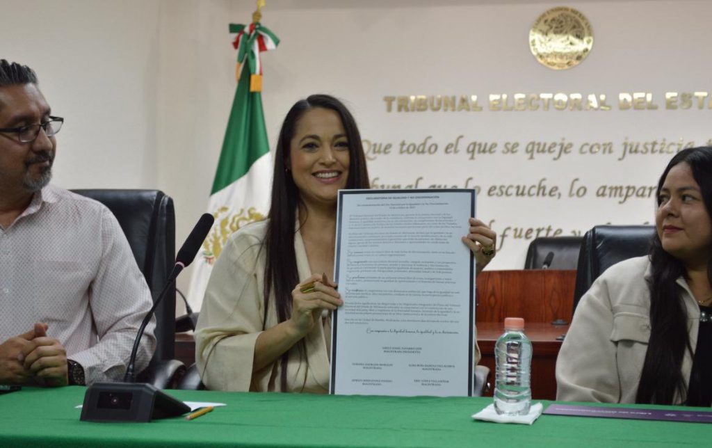Morelia, Michoacán a 19 de octubre de 2025. El Pleno del Tribunal Electoral del Estado de Michoacán signó la “Declaratoria de Igualdad y No Discriminación”, y se realizó el acto simbólico de entrega de la placa por parte del Consejo Estatal para Prevenir y Eliminar la Discriminación y la Violencia del Gobierno de Michoacán (COEPREDV) en la que este órgano jurisdiccional es un espacio libre de discriminación.