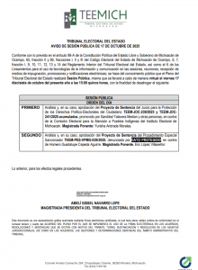 - Lo anterior, con fundamento en los artículos 98 A de la Constitución Política del Estado Libre y Soberano de Michoacán de Ocampo; 60, 64, fracción XIII, y 66, fracciones III y X, del Código Electoral del Estado de Michoacán de Ocampo; y 5 de la Ley de Justicia Electoral; así como la jurisprudencia 24/2001 de la Sala Superior del Tribunal Electoral del Poder Judicial de la Federación, de rubro: TRIBUNAL ELECTORAL DEL PODER JUDICIAL DE LA FEDERACIÓN. ESTÁ FACULTADO CONSTITUCIONALMENTE PARA EXIGIR EL CUMPLIMIENTO DE TODAS SUS RESOLUCIONES. ↑