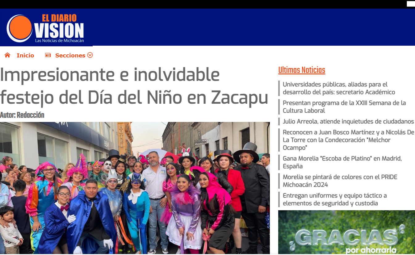 “NOTICIAS ROOSTER 3.3”, “Informativo Michoacán”, “EL DIARIO VISIÓN Las Noticias de Michoacán” y “Multimedia Michoacán”. |