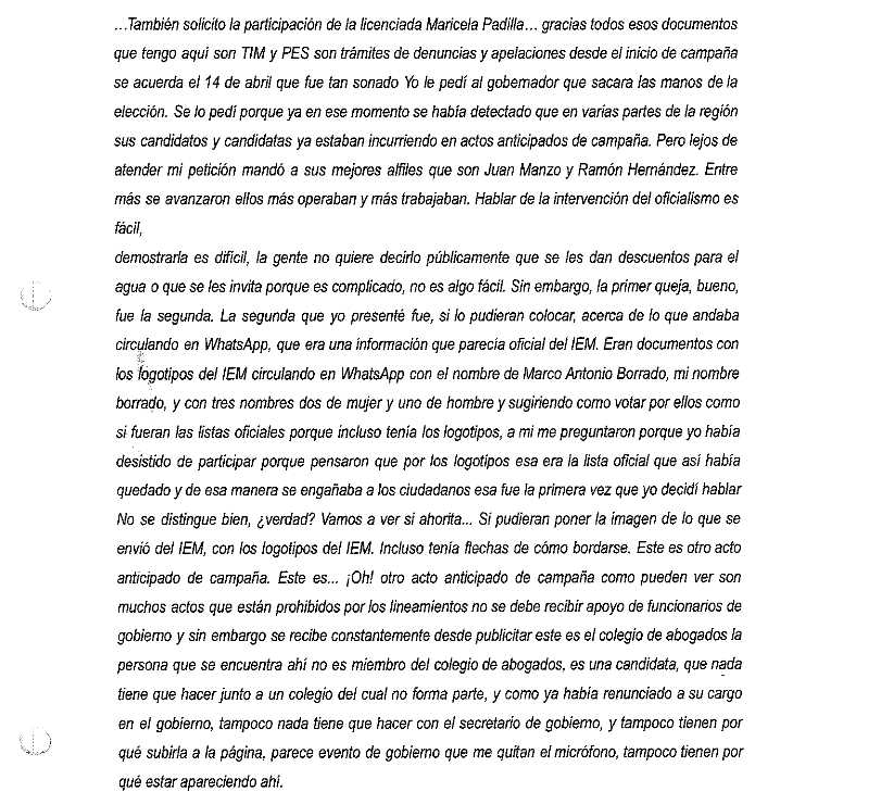 67. Asimismo, ello de acredita con el reconocimiento expreso de la denunciada y del candidato Marco Antonio Padilla Pimentel.