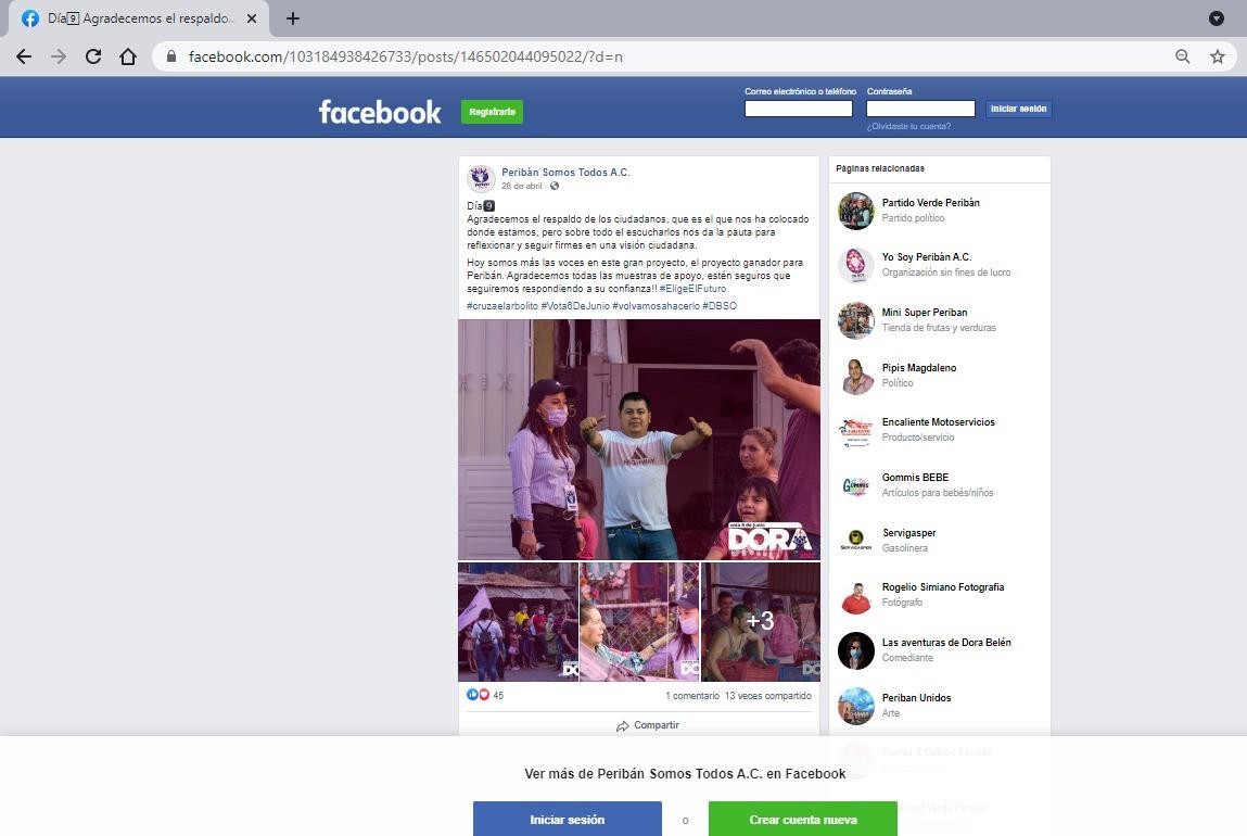 - La página de Facebook “Todos Somos Peribán A.C.” es manipulada por la representante legal de dicha asociación civil, Myrna Saray Sánchez Orozco.
